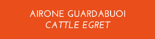 L’Airone guardabuoi (Bubulcus ibis), dal piumaggio bianco, è alto circa 30 cm; ha il collo corto, il becco giallo e le zampe grigie. Per la stagione riproduttiva sfoggia una livrea con piume arancioni sulla nuca e sul dorso, becco e zampe di colore carnacino. Si nutre di pesci, anfibi e invertebrati acquatici ma spesso segue mandrie per posarsi sul loro dorso e nutrirsi di parassiti. Nidifica in garzaia con altri Ardeidi.